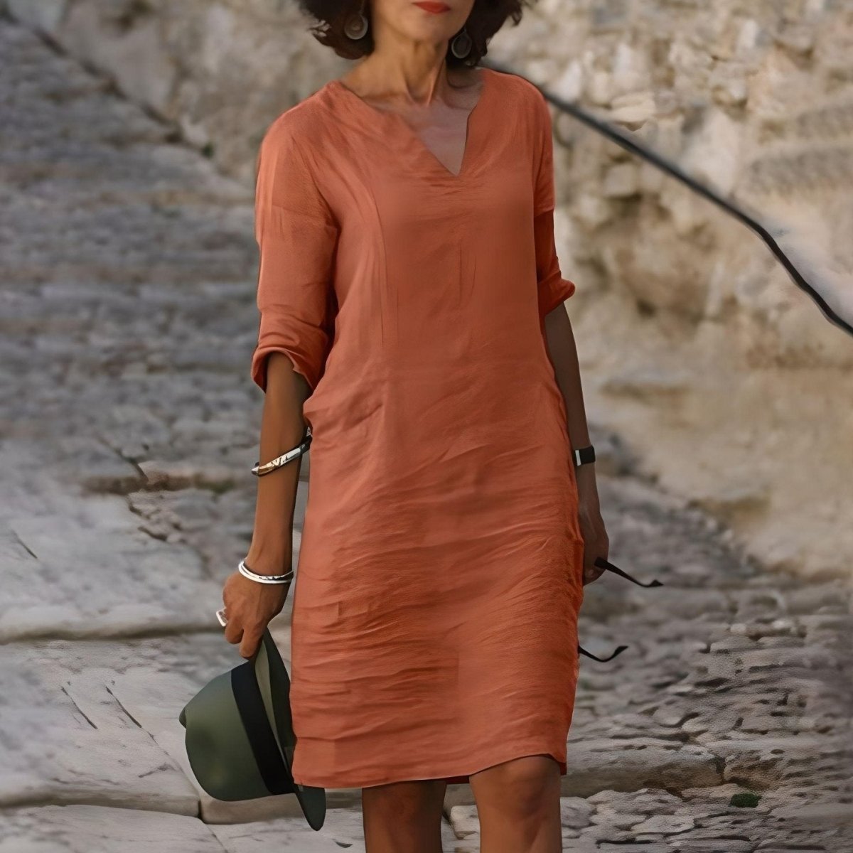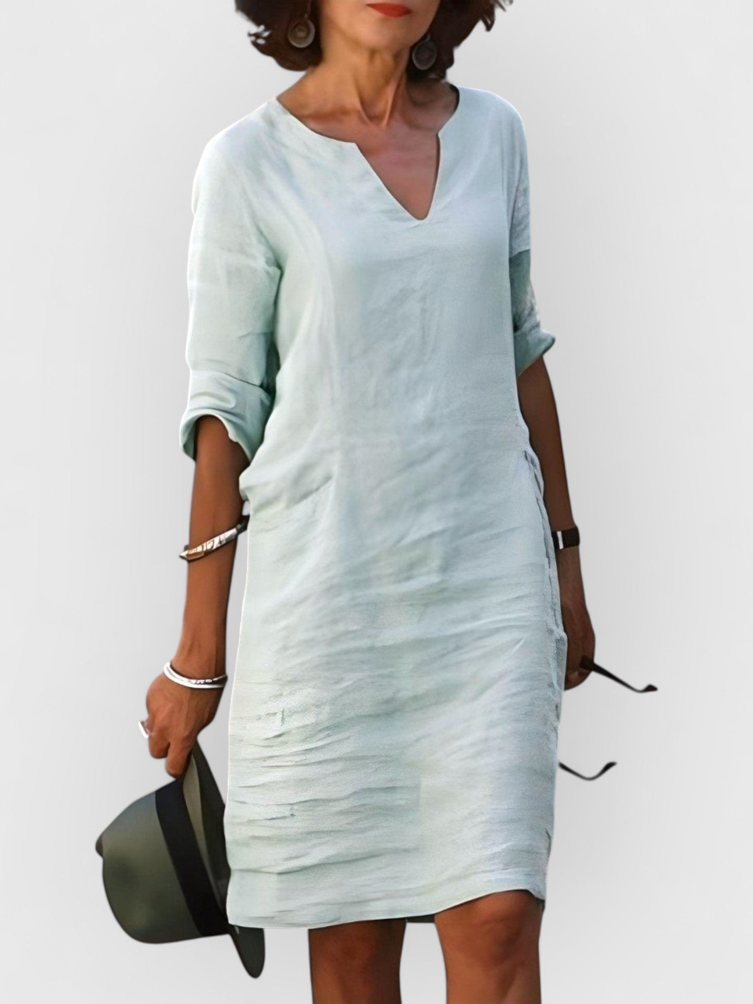 Discover the Solène dress – a piece that is both graceful and easy to wear, designed for those who love to combine comfort and elegance. With its lightweight fabric and flattering cut, it accompanies you in style, whether for a stroll in the city or an evening on the terrace.