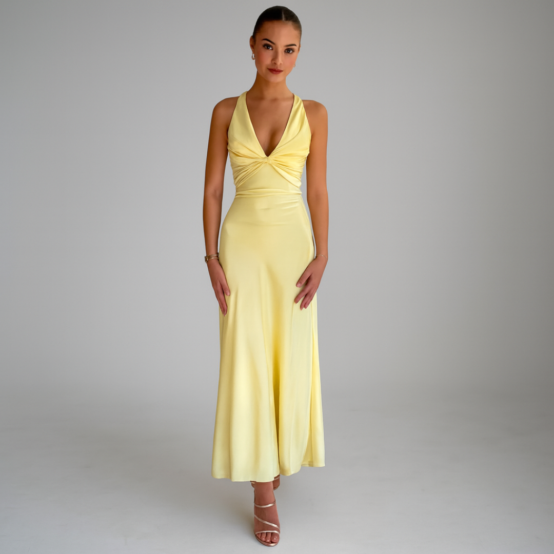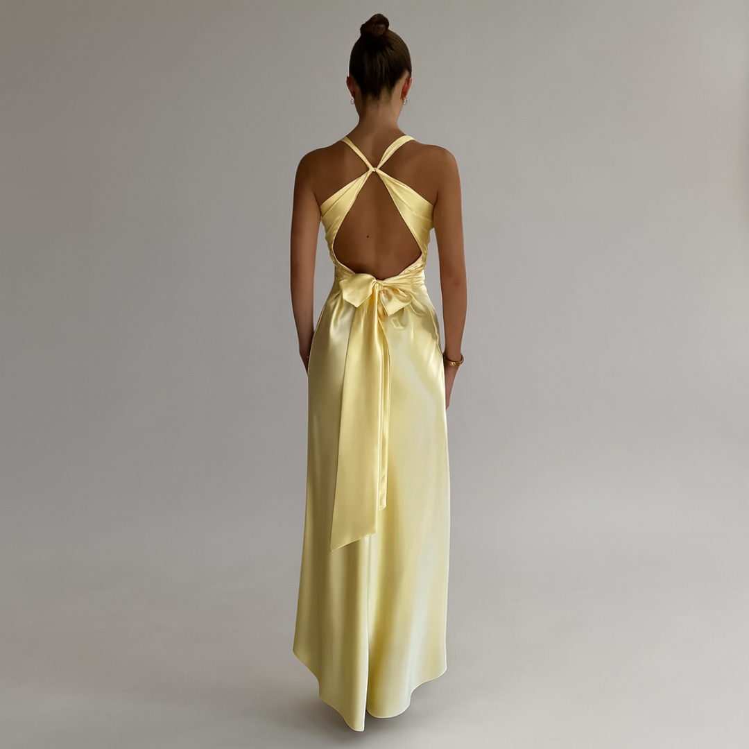 ELYRA™ | Yellow Satin Maxi Dress